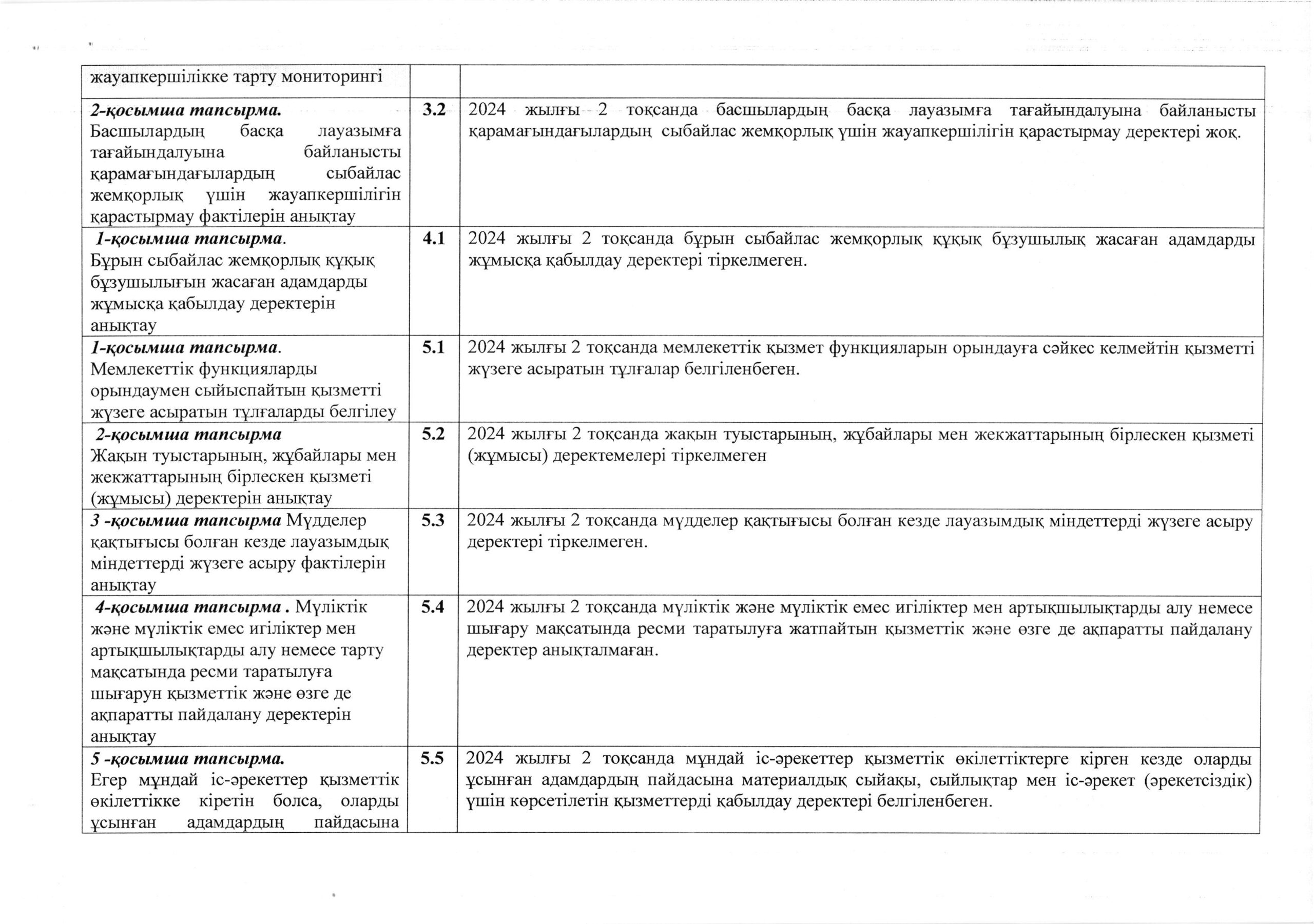 2024 жылғы 3 тоқсанға есеп (анықтама) Сыбайлас жемқорлыққа қарсы заңнаманың нормаларын сақтау