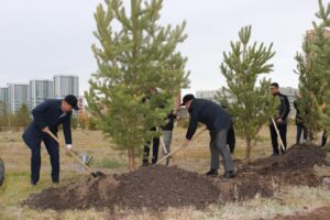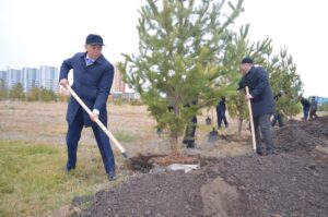 Бүгін елорданың Ботаникалық бағында Комитет төрағасы Сәбит Нұрлыбай «Есіл» ауданының әкімі Асылбек Есенбаевпен бірге қарағай ағаштарын отырғызды.